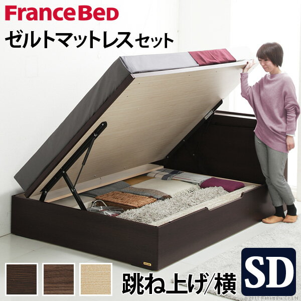 【スーパーセールでポイント最大44倍】【フランスベッド】 照明 宮付 国産ベッド 跳上縦開き セミダブル ゼルトスプリングマットレス付 ミディアムブラウン i-4700799【代引不可】