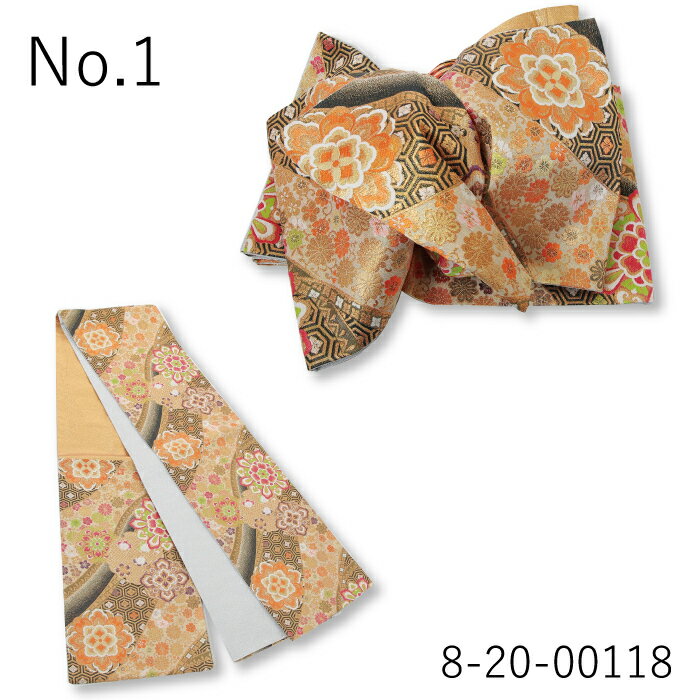 商品情報 サイズ No1 (8-20-00118) 全長454cm 手先58cmNo2 (1-20-10626) 全長452cm 手先58cmNo3 (5-20-10862) 全長450cm 手先52cmNo4 (5-20-10826) 全長443cm 手先57cmNo5 (5-20-10759) 全長454cm 手先53cmNo6 (5-20-10706) 全長459cm 手先62cmNo7 (5-20-10597) 全長451cm 手先61cmNo8 (1-20-10629) 全長430cm 手先47cm素材 袋帯:正絹 レーヨン 金糸注意点 本品は当店でレンタル振袖として使っている商品の処分販売となりますので、多少の使用感がございますのでご了承くださいませ。