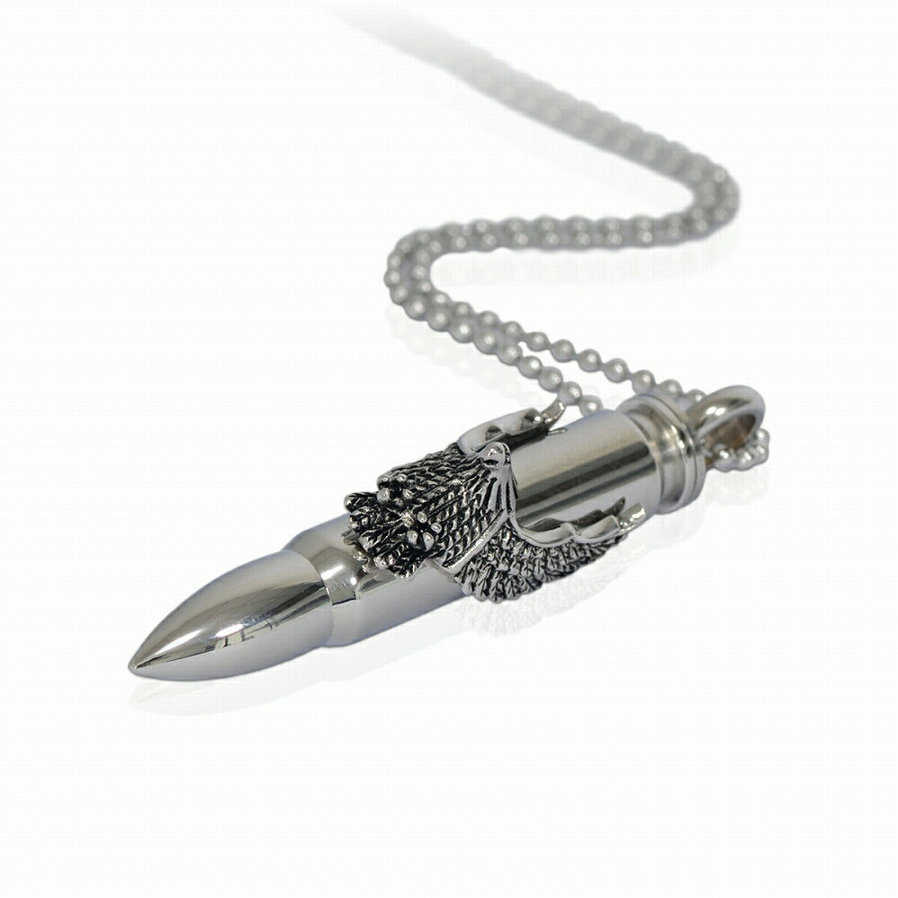 ボディにイーグルが施されたワイルドでクールな弾丸モチーフステンレス製ロケットペンダントです。