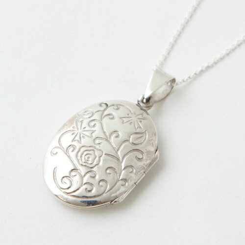 オーバル 植物 オーバルデザインにお花と植物を彫刻、表裏に凹凸感を生かした凝った作りのロケットペンダントです。