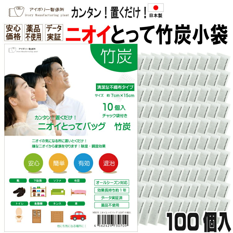 【竹炭消臭バッグ100個入(10個入×10袋)】日本製 送料無料 竹炭 消臭 調湿 除湿 カビ 結露 湿気 袋 靴 下駄箱 トイレ クローゼット 食器棚 ソファ 布団 押入れ 車 タンス 靴消臭 家中 車内 部屋 ブーツ 消臭袋 臭い 薬品不使用 安心 汗 匂い 簡単 ブーツ 備長焼竹炭 防臭