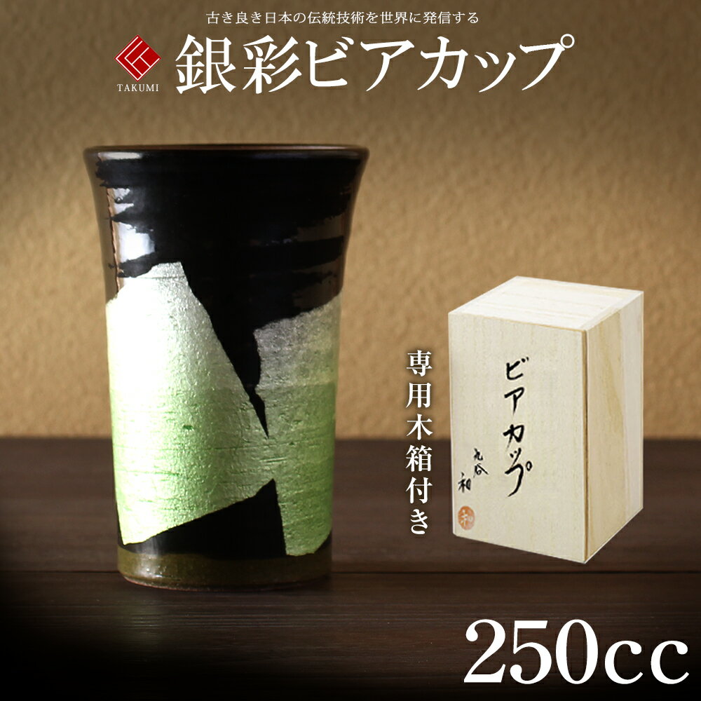 【敬老の日 九谷焼 贈り物】【送料無料】 米寿 プレゼント 金婚式 ビアカップ タンブラー ビールグラス 250cc 銀彩 萌黄色【 陶器 ジョッキ 還暦祝 退職祝 結婚祝 ペア 夫婦 誕生日 退職祝い プレゼント 男性 古希 喜寿 内祝 】